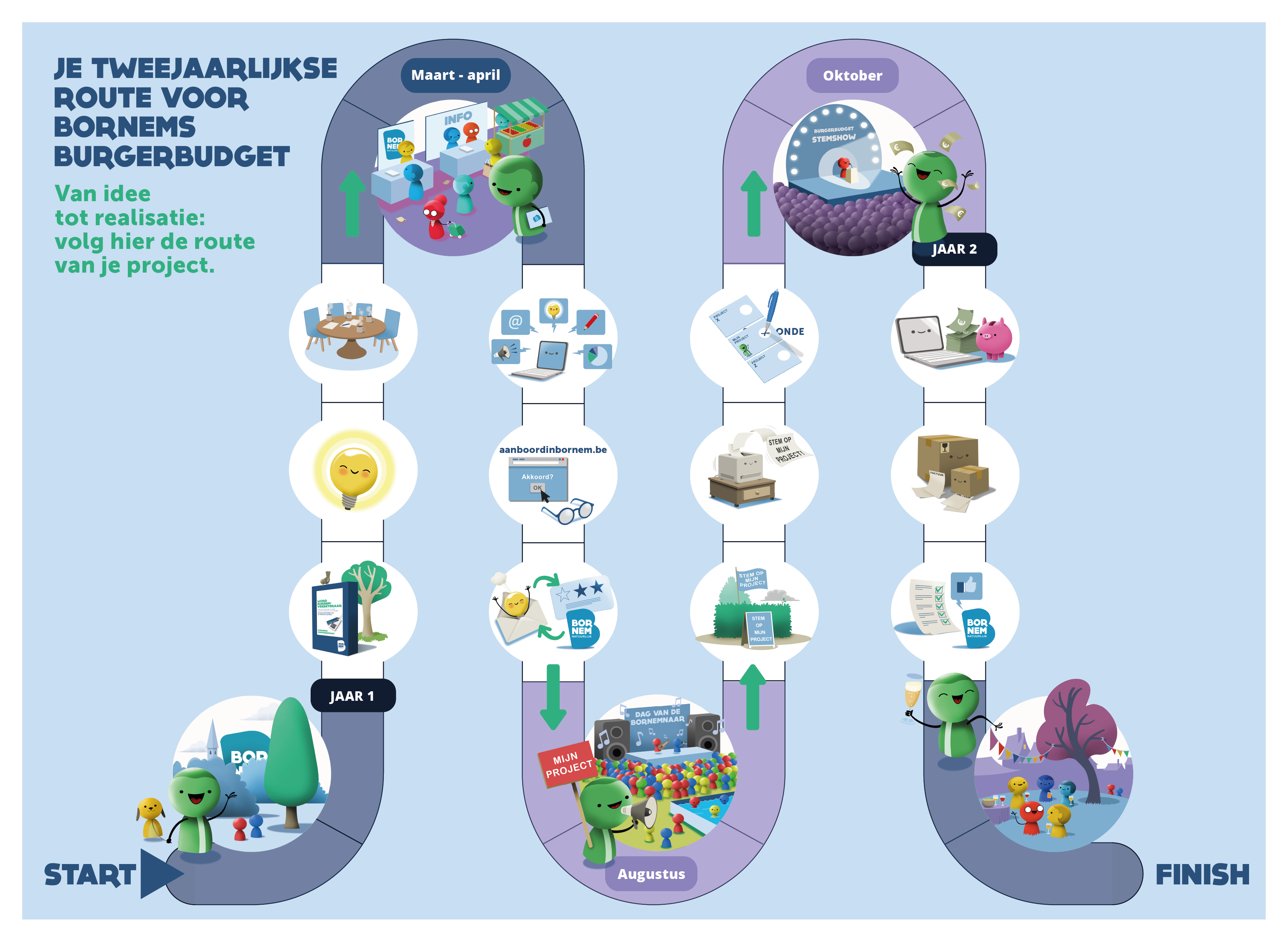 Heb jij een idee dat je straat, je buurt of Bornem vooruithelpt? Met het Bornems Burgerbudget krijg jij de kans om dat idee écht waar te maken. Bornem zet om de twee jaar 78 000 euro opzij voor projecten die onze gemeente groener, socialer, speelser of gewoon nét dat tikkeltje leuker maken.